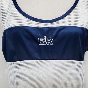 Vintage 1970s Bill Rodgers Blue White Mesh Sleeveless Singlet Running Sport Tank.