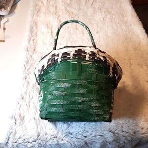 VINTAGE (1970's) Handcrafted Rare Woven Handpainted Christmas Basket 10"…