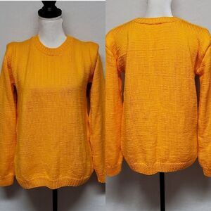 VINTAGE 1970s Handmade Tangerine Knit Puff Shoulder Oversized Tapered Sweater
