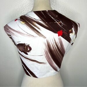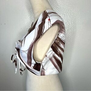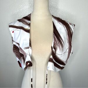 VINTAGE 1970s Holo-Holo Crop Tie Front Top Hawaiian Brown White Vtg 70s Size 16