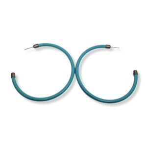 VINTAGE 1970s LARGE TURQUOISE BLUE ENAMELED HOOP EARRINGS WITH DIAMOND CUTS