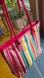 This bag screams The Row, fashion girlies will know. Super Vibrant colored tote bag with multicolor stripes. Features leather red handles and trim. Excellent condition with very minor wear on leather and no interior marks or stains! Exterior is perfect!