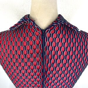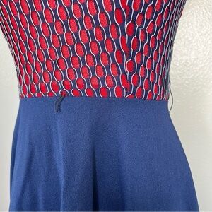 VINTAGE 1970s Mini Dress A-Line Back Zip Red Navy Vtg 70s Union Made