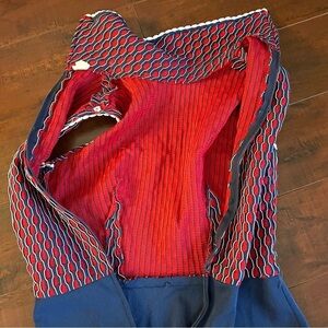 Adorable back zip dress, red top is a sheer mesh. Great vintage condition.