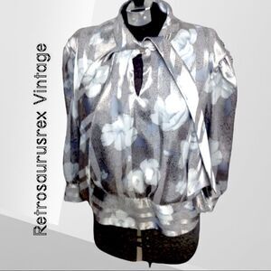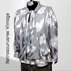 VINTAGE 1970's Two Tone Silver and Grey Secretary Blouse by Frejani, size XL 1X
