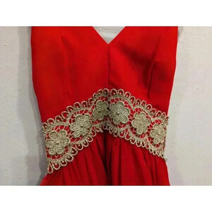 VINTAGE 1970s halter tangerine dress w/gold beaded waist detailing Jr Theme approx size XS see pics for measurements Disco Prom Homecoming court Valentine's Day Formal