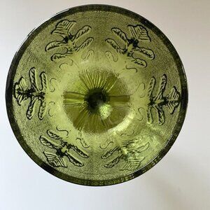 VINTAGE 1975 FTD EMBOSSED OAK LEAF GREEN GLASS PEDESTAL GOBLET
