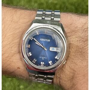 VINTAGE 1975 Seiko 5 Actus 23j Mens Automatic Watch Bracelet Blue Dial 6106-8680