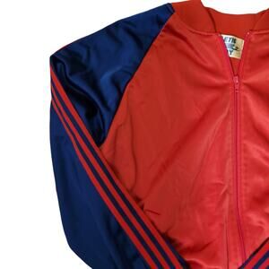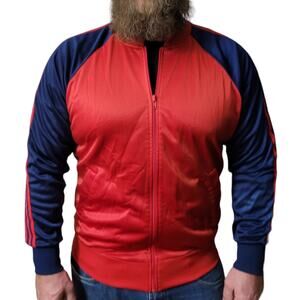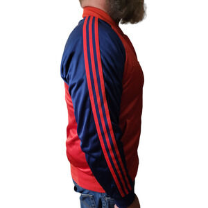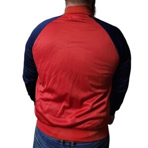 VINTAGE 1980 Athletic Shoe Factory Mens Red Blue Jacket Sz Large Full Zip Retro