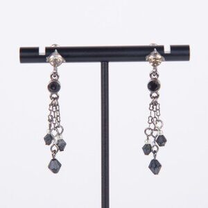 Lovely pair of earrings with rhinestones and black beads on a three-tiered drop down from single rhinestone pierced stud.