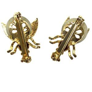 VINTAGE 1980s Bee Wiggle Stick Pins Pair Women Gold Insect Brooches Rhinestones