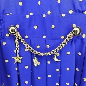 Gold button and waist chain detail, which features star, moon, and leaf charms.