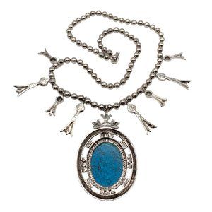 VINTAGE 1980's Mode Art Howlite Squash Blossom Statement Necklace