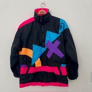 VINTAGE 1980s Obermeyer Ski Jacket 1/2 Zip Padded Shoulders Pockets Women's 10