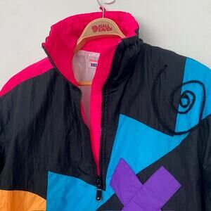 VINTAGE Obermeyer 1/2 Zip Ski 0Jacket Colorblock Zip Pockets Padded Shoulders Women's 10