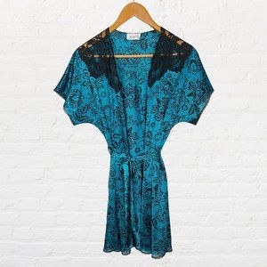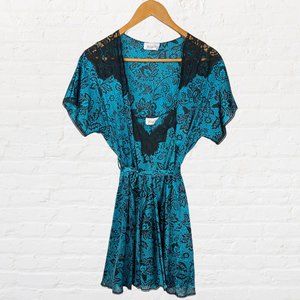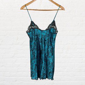 VINTAGE | 1980’s Vanity Fair Teal Black Lace Intimates Slip Dress & Robe Set