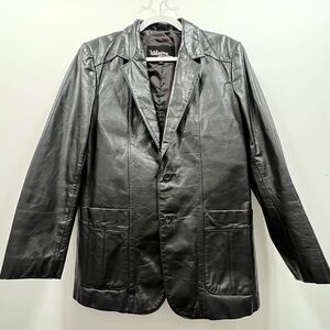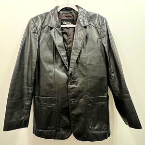 Pre-owned vintage Wilson’s leather jacket. There is one tear on the interior of the coat and one small flaw to leather on the bottom right of coat. Leather is in otherwise excellent condition.