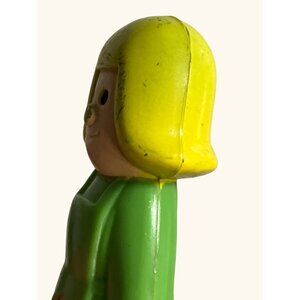 VINTAGE 1984 Plastic DURHAM MOM Doll House FIGURE by Fisher-Price. Green and yellow, 3.25-inch plastic figure, perfect for collectors and dollhouse enthusiasts.