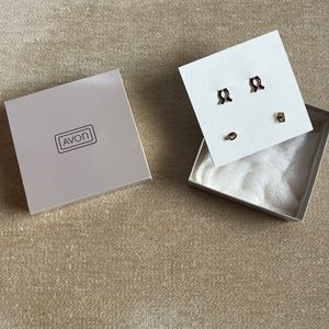 VINTAGE (1985) AVON GOLDEN PINWHEEL PIERCED EARRINGS AND BUTTON COVERS SET