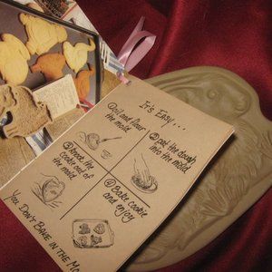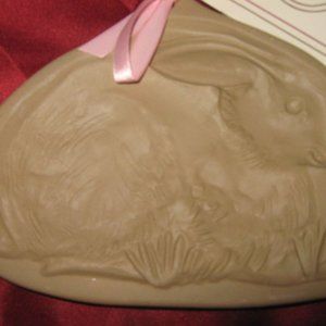 VINTAGE 1986 BROWN BAG COOKIE ART RUNNING RABBIT DESIGN CERAMIC COOKIE MOLD