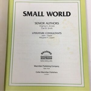 You will receive one Small World book as shown in photos. Book has wear marks & scratches from use, dog eared & creased pages, corners are bent, and yellowing, spots & stains inside and out. It has been previously loved but still has lots of life left. Perfect for a classroom or homeschooling library. Please see photos for details.