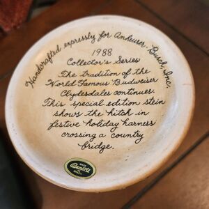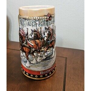 VINTAGE! 1988 Anheuser Busch Budweiser Holiday Beer Stein Clydesdales