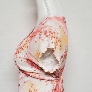 VINTAGE 1990s Carolina Blues Peach Floral Stretchy Ruffle Tie-Waist Mini Dress