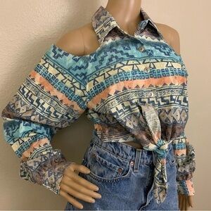VINTAGE 1990s Cold Shoulder Cropped Button Down Top Size Large