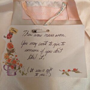 I picked this up at an estate sale... and the little note attached was so cute, and shows that this is pre-owned, but UNWORN.
