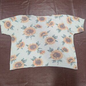 VINTAGE 1990s Denim Republic Sunflower Short Sleeve Cropped Textured Sweater Sz. M