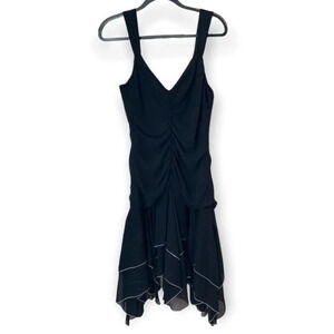 VINTAGE 1990s Goth Dress Ruched Ruffles Alt Y2K Black AGB Dress Size 10 Prom