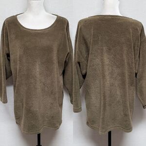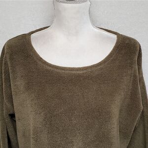 VINTAGE 1990s Moda International Green Terrycloth Oversized Wide Neck Sweater S