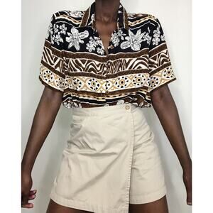 VINTAGE | 1990s Neutral Tropical Tribal Abstract Print Camp Hawaiian Shirt