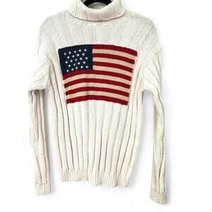 VINTAGE 1990's RALPH LAUREN 90's M American Flag USA Sweater Turtleneck Knit