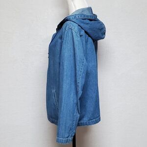 VINTAGE 1990s Sag Harbor Stone Wash Full-zip Hooded Denim Shacket Jacket Medium
