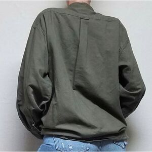 VINTAGE 1990s Tommy Hilfiger Army Green Linen Unisex Button Up Long Sleeve Shirt