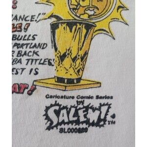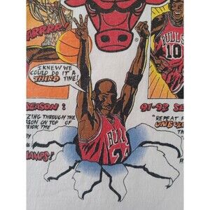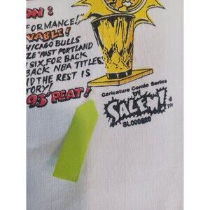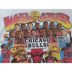 VINTAGE 1993 CHICAGO BULLS SALEM 3-PEAT NBA WORK CHAMPS CARICATURE T-SHIRT LARGE
