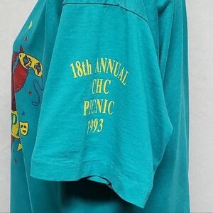 VINTAGE 1993 OOAK Mardi Gras Picnic Turquoise Sax Lobster Single Stitch Tee L