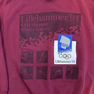 VINTAGE 1994 Lillehammer Olympics Crew Neck Red Sweatshirt USA SZ XL (fits M)