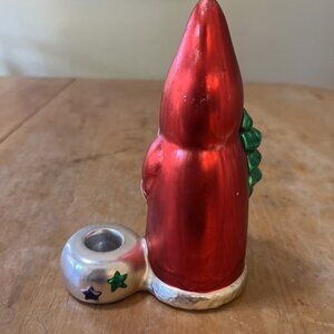 VINTAGE 1996 ENESCO OTAGIRI GLASS SANTA Taper Candle Holder 6.5" tall by 4.5"w s
