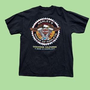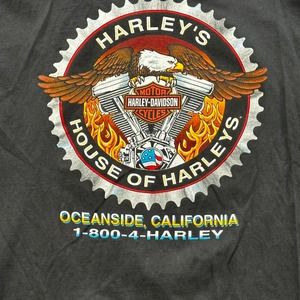 Description: vintage 1996 GRUNGE Harley Davidson Motorcycle black shirt, size large, in great condition with no holes but slight fade