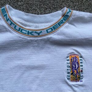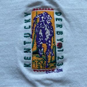 This unique Kentucky derby vintage 1996 short sleeve tee shirt is in great condition. It has a couple of faint stains as seen in pictures, but otherwise in great condition. No holes or rips.