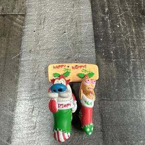 VINTAGE 1996 REN & STIMPY CHRISTMAS ORNAMENT HAPPY HAPPY JOY JOY- VIACOM Lots of life left. See photos.