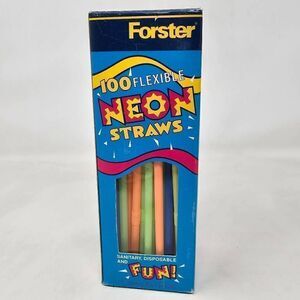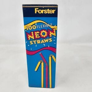 VINTAGE 1998 DIAMOND FORSTER 100 FLEXIBLE NEON PLASTIC STRAWS PARTY NOS BENDY