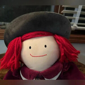 VINTAGE 1999 Madeline special edition 60th Anniversary doll by Eden. 18” soft doll. All tags are intact. Dress is maroon velvet with off white satin roses and belt. White eyeliner petticoat. Faux lace tights on her legs with matching maroon velvet shoes. Her hair is red yarn. Her hat is detachable, gray felt with a blue, green plaid bow. The hat has a few scuffs (see picture). The tag is perfectly intact with a hard plastic protective covering. This is a 23 year old doll. Beautiful condition.