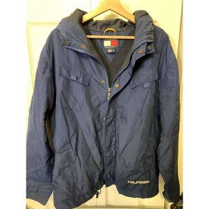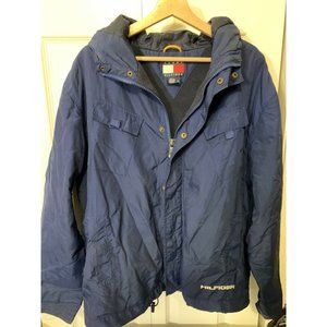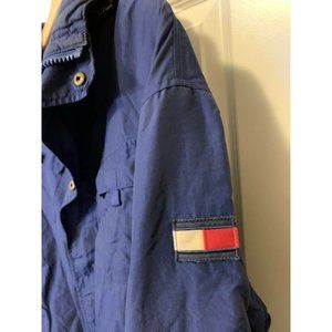 VINTAGE 1999 Mens Sz M Tommy Hilfiger Blue Hooded Rain Jacket