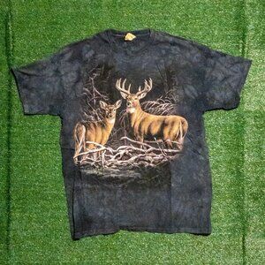 VINTAGE 1999 THE MOUNTAIN MENS T SHIRT BLUE TIE DYE MARBLE DEER OUTDOORS SZ XXL