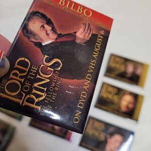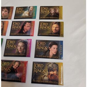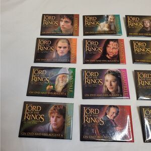 Vtg 01 Y2K LOTR The Fellowship of the Ring full set of 12 promotional pins only available at stores when the DVD was released in 2001. 2 of the pins have scratches shown in photos. Great for a pin board or ita pin bag.