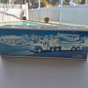 This vintage 2002 Hess Toy Truck and Airplane is new in the original box. They toy features the iconic green and white color scheme that Hess trucks are known for. Manufactured in China, the only time this has been removed from the box is for these photos. The airplane still has the original plastic surrounding it. This has been in storage for a number of years and the outer box has some discoloration. Please see photos as they are part of the description. Smoke free home. Reasonable offers considered.