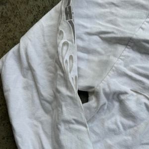 Description: vintage 2003 Tribal Harley Davidson white long sleeve, size L (estimate no tag), in good condition but small black marks (6th picture) and marks on right sleeve (3rd picture)